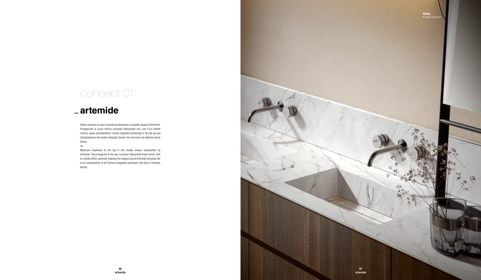 Artemide. The protagonist is the new Laminam Statuarietto finish which, with