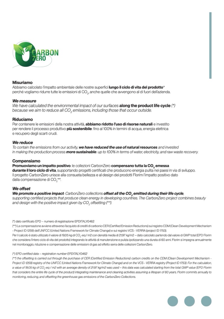 Il progetto CarbonZero unisce alla consueta bellezza e al design dei prodotti Florim l’impatto positivo dato