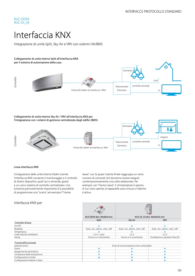 l'interfaccia KNX consente il monitoraggio e il controllo