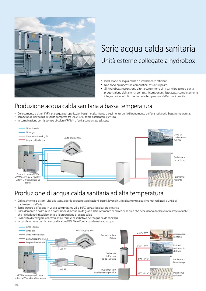 Collegamento a sistemi VRV aria-acqua per le seguenti applicazioni: bagni, lavandini, riscaldamento a pavimento, radiatori e unit