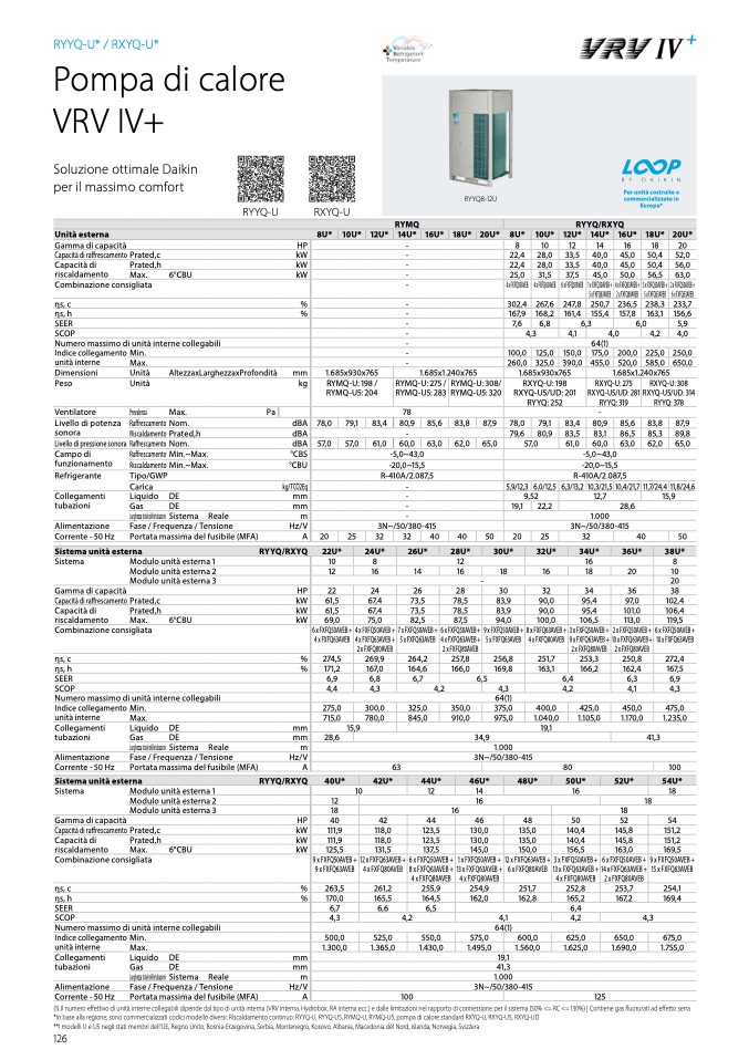 *In base alla regione, sono commercializzati codici modello diversi: Riscaldamento continuo: RYYQ-U, RYYQ-U5, RYMQ-U, RYMQ-U5, pompa di calore standard RXYQ-U, RXYQ-U5, RXYQ-UD