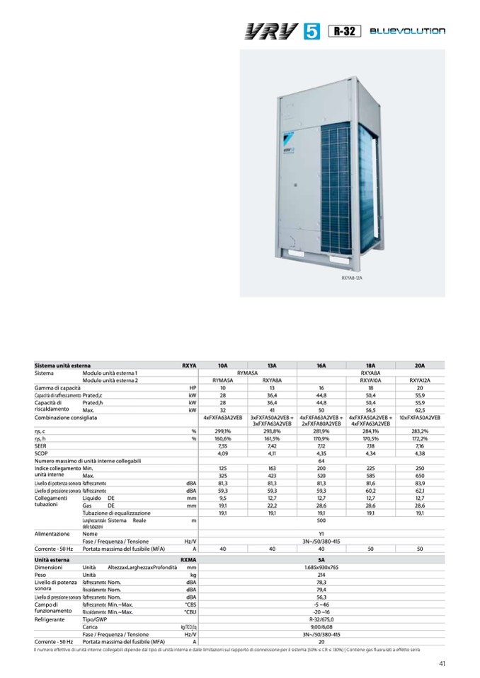 ffettivo di unità interne collegabili dipende dal tipo di unità interna e dalle limitazioni sul rapporto di connessione per il sistema (50% ≤ CR ≤ 130%) | Contiene gas