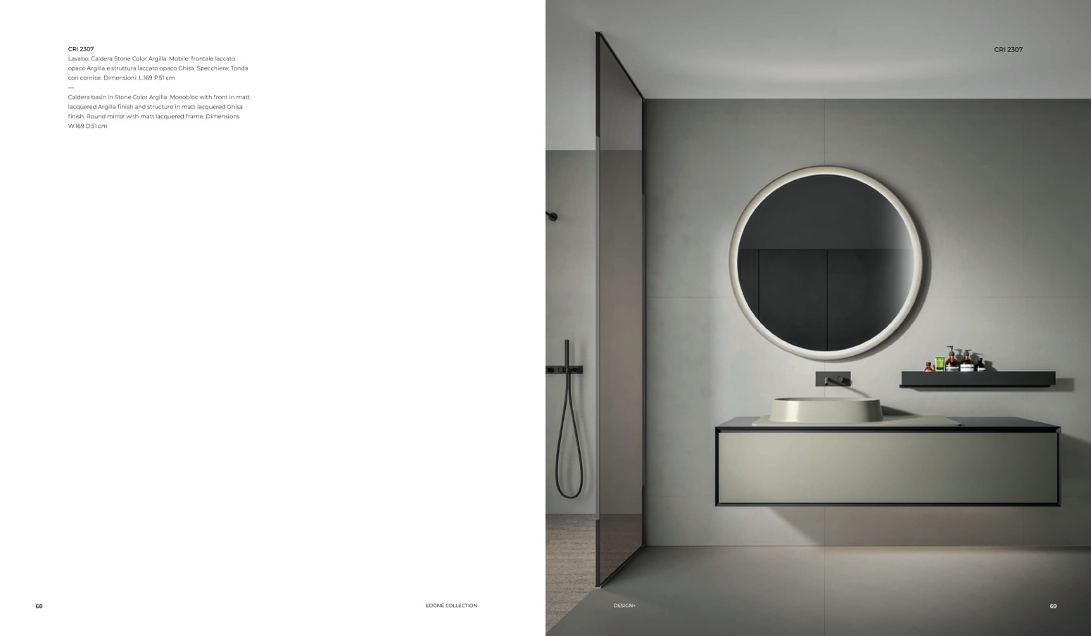 opaco Argilla e struttura laccato opaco Ghisa. Specchiera: Tonda