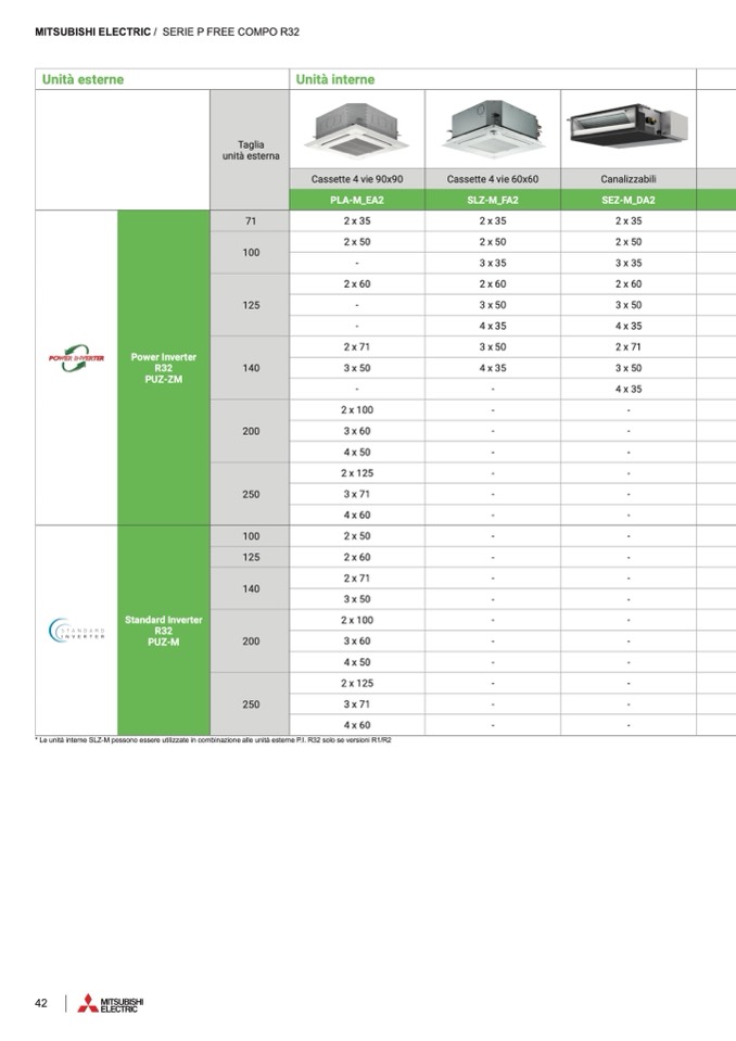 * Le unità interne SLZ-M possono essere utilizzate in combinazione alle unità esterne P.I. R32 solo se versioni R1/R2