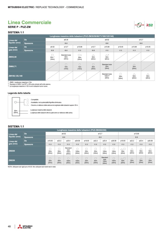 Lunghezza massima delle tubazioni (PUZ-ZM35/50/60/71/100/125/140)