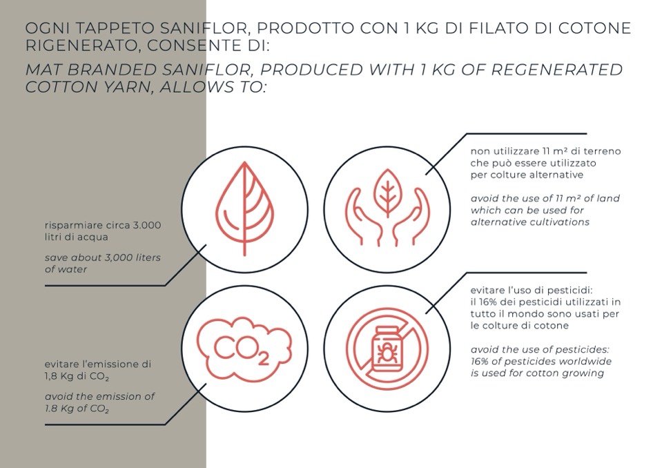 OGNI TAPPETO SANIFLOR, PRODOTTO CON 1 KG DI FILATO DI COTONE