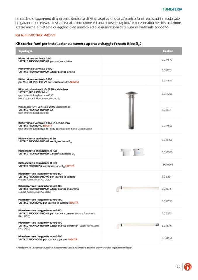 VICTRIX PRO 100/120/150 V2 per scarico in camino