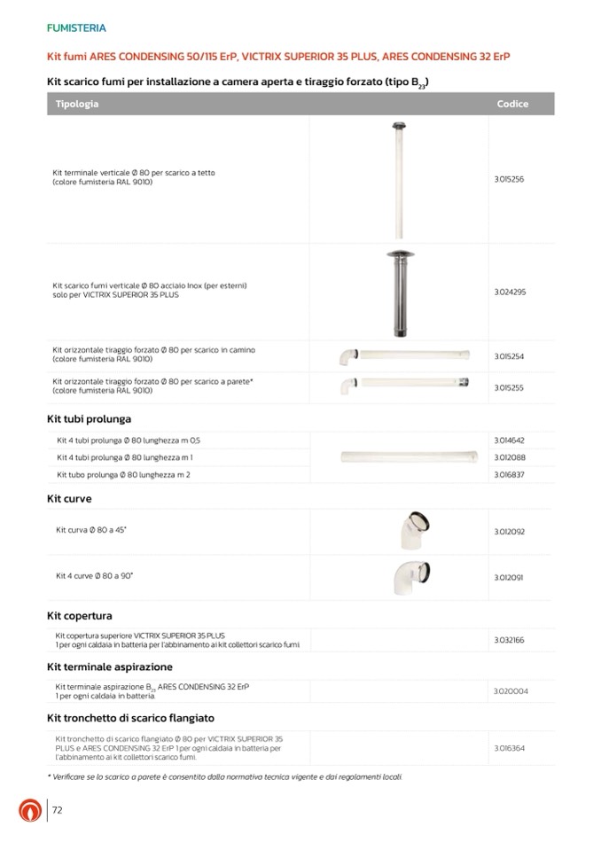 Kit tronchetto di scarico flangiato Ø 80 per VICTRIX SUPERIOR 35