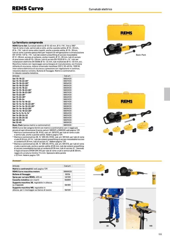 REMS Curvo Set vengono forniti con matrici e contromatrici con il raggio più