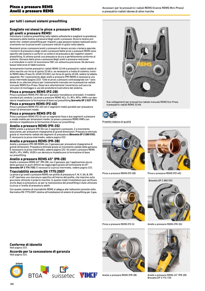 Le pinze e gli anelli a pressare REMS con profilo di pressatura F, M, V, SA, B, RN