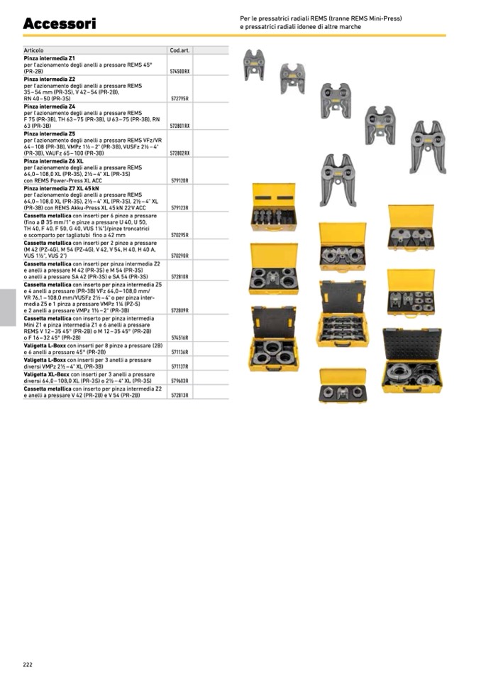 Per le pressatrici radiali REMS (tranne REMS Mini-Press)