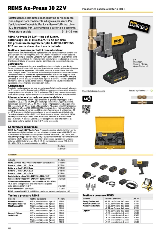 REMS Ax-Press 30 22V – fino a Ø 32 mm.