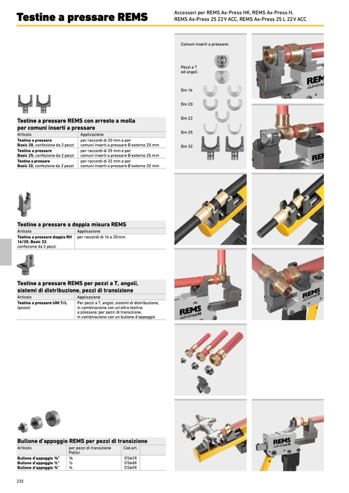 Testine a pressare a doppia misura REMS