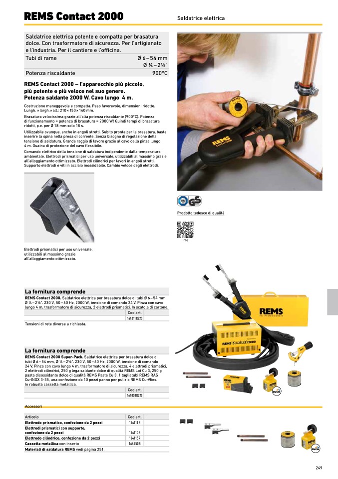 REMS Contact 2000. Saldatrice elettrica per brasatura dolce di tubi Ø 6 – 54 mm,