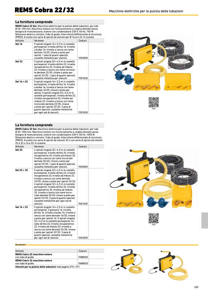 Utensili per la pulizia delle tubazioni vedi pagine 270 – 271.
