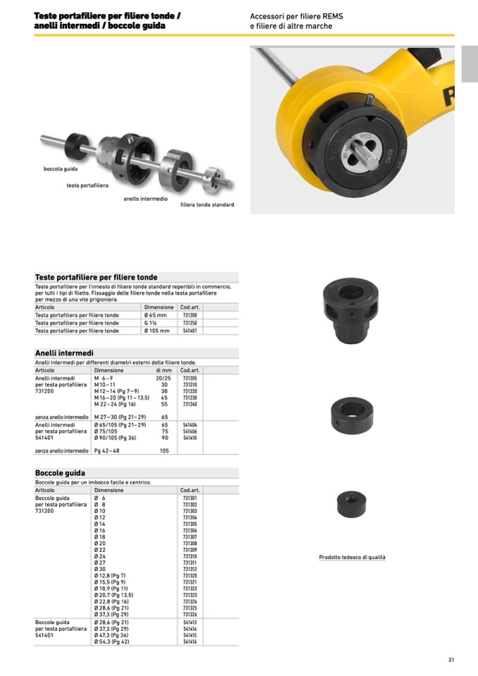 per tutti i tipi di filetto. Fissaggio delle filiere tonde nella testa portafiliere