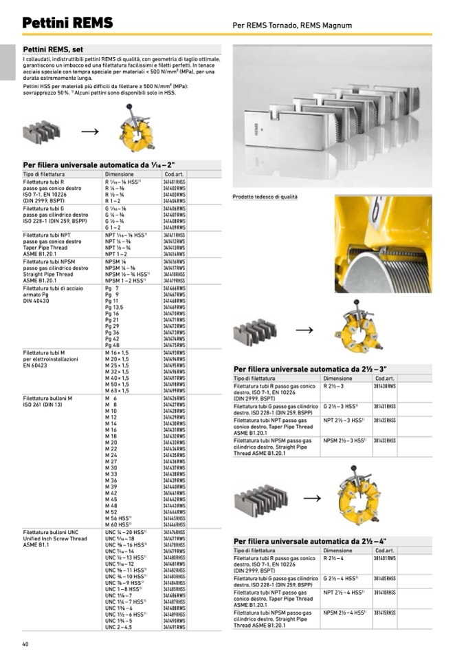 garantiscono un imbocco ed una filettatura facilissimi e filetti perfetti. In tenace