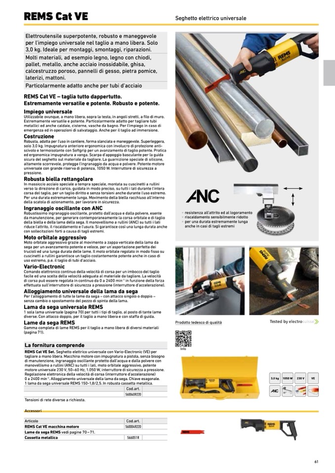 REMS Cat VE Set. Seghetto elettrico universale con Vario-Electronic (VE) per