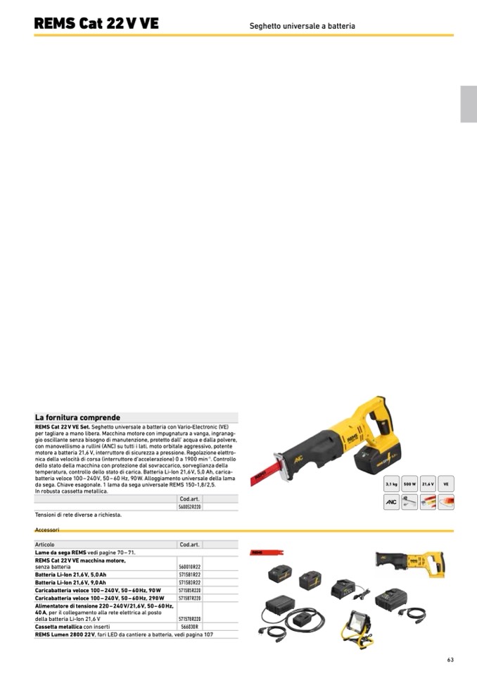 REMS Cat 22 V VE Set. Seghetto universale a batteria con Vario-Electronic (VE)