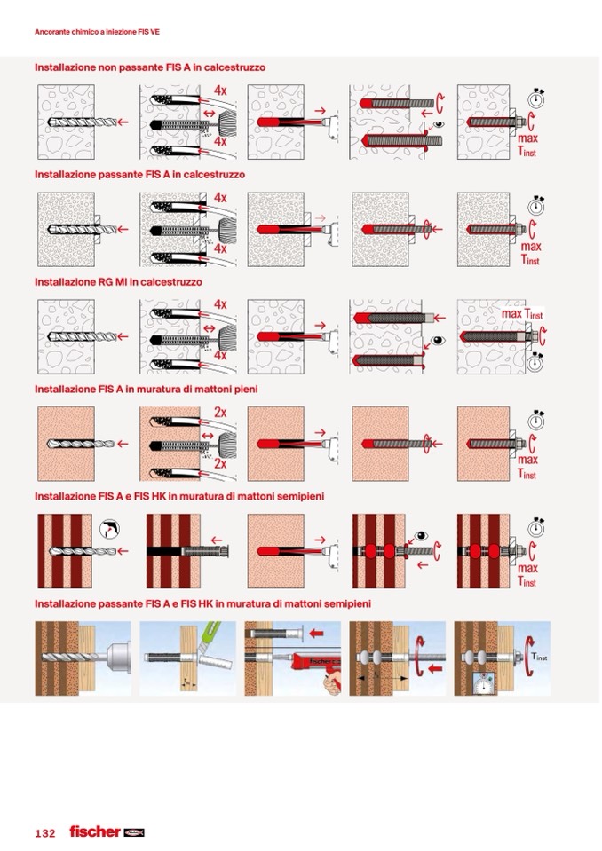Installazione passante FIS A e FIS HK in muratura di mattoni semipieni