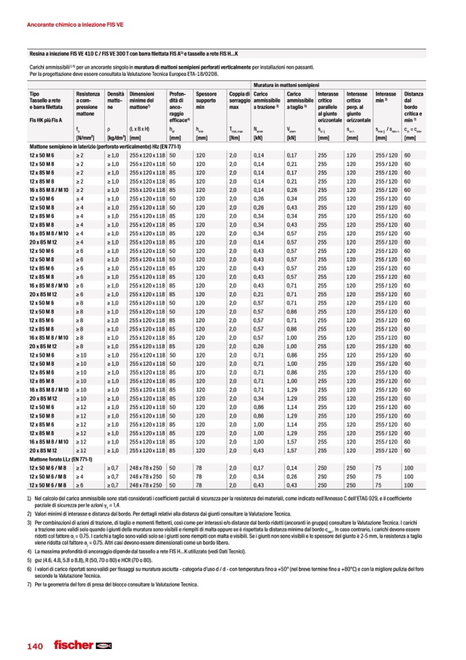 per un ancorante singolo in muratura di mattoni semipieni perforati verticalmente per installazioni non passanti.