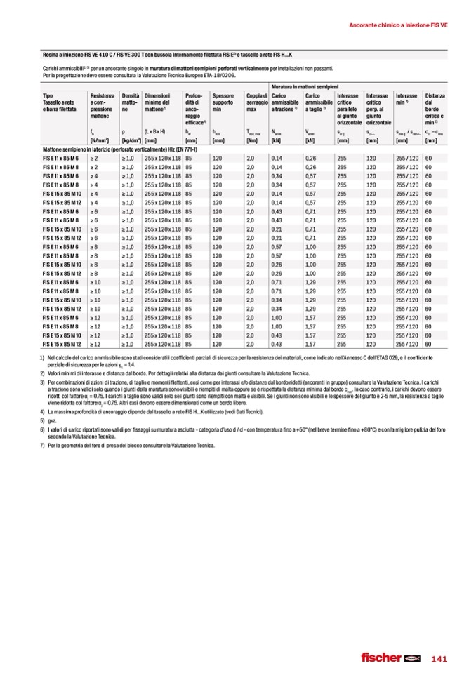 per un ancorante singolo in muratura di mattoni semipieni perforati verticalmente per installazioni non passanti.