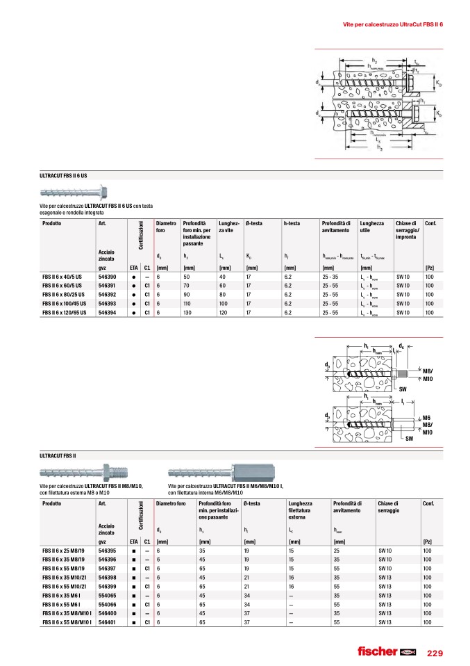 Vite per calcestruzzo ULTRACUT FBS II M6/M8/M10 I,