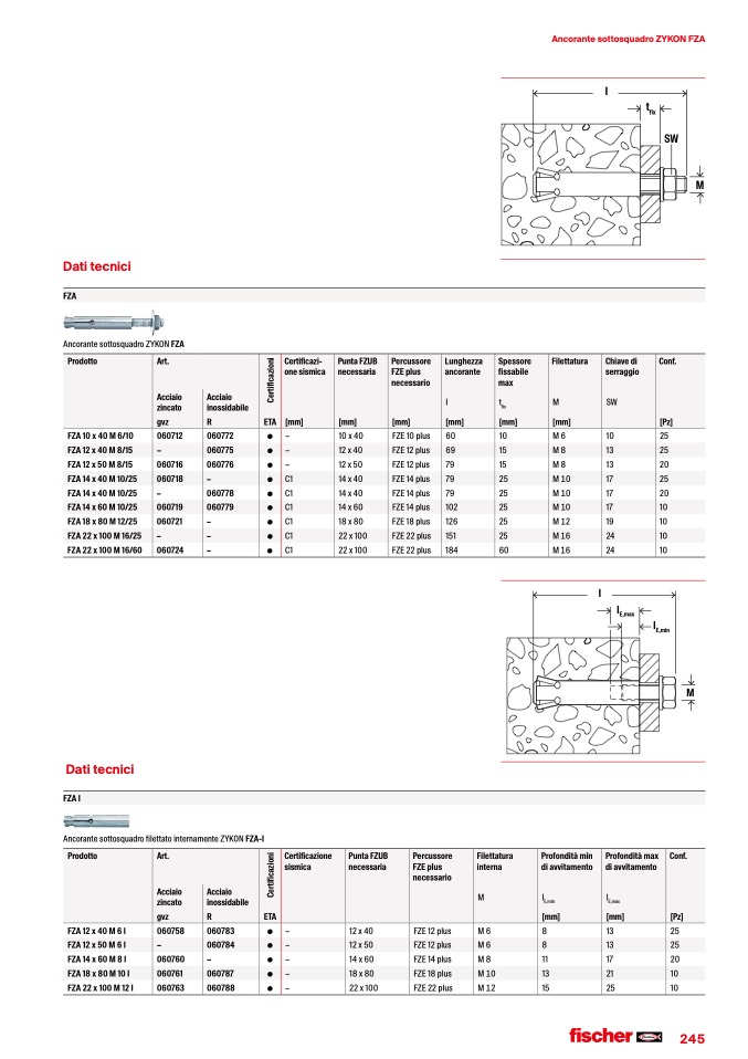 Ancorante sottosquadro filettato internamente ZYKON FZA-I