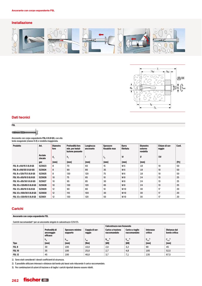 Ancorante con corpo espandente FSL-S 8.8 GS, con vite
