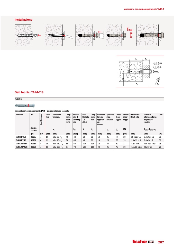 Ancorante con corpo espandente TA M-T S per installazione passante