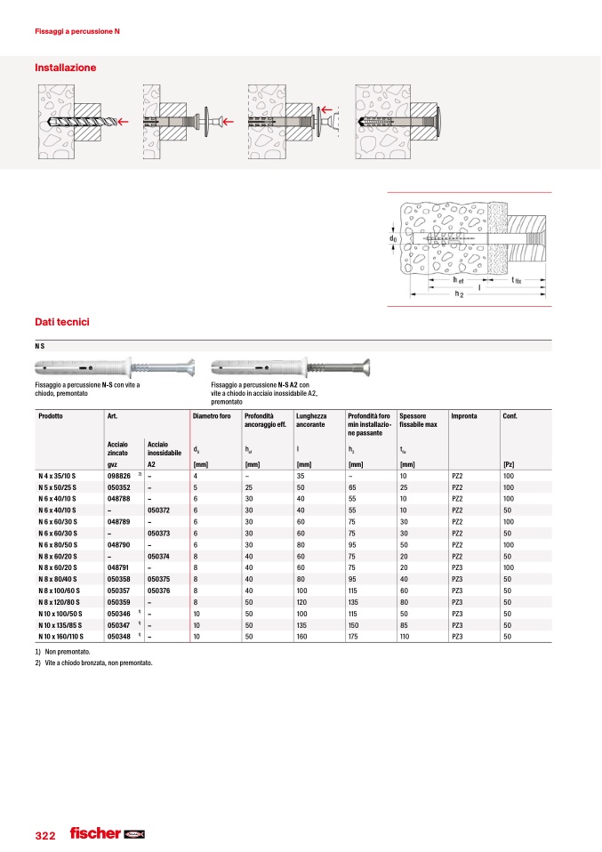 Fissaggio a percussione N-S A2 con