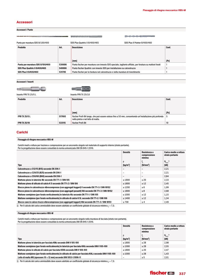 Carichi medi a rottura per trazione e compressione per un ancorante singolo nel materiale di supporto interno (strato portante).