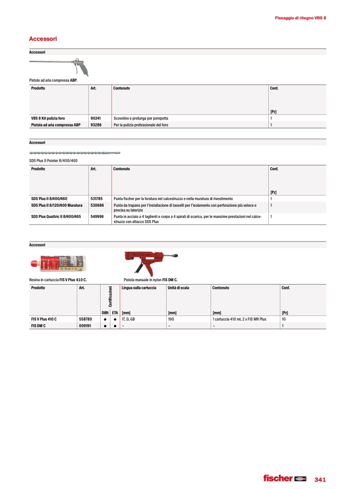 Punta fischer per la foratura nel calcestruzzo e nella muratura di rivestimento