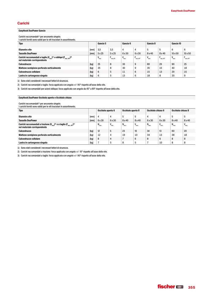 2) Carichiraccomandatiatrazione:forzaapplicataconangolo+/-10°rispettoall'assedellavite.