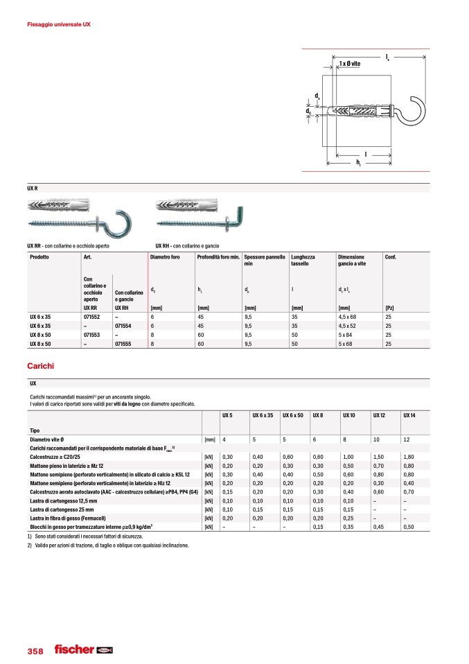 I valori di carico riportati sono validi per viti da legno con diametro specificato.