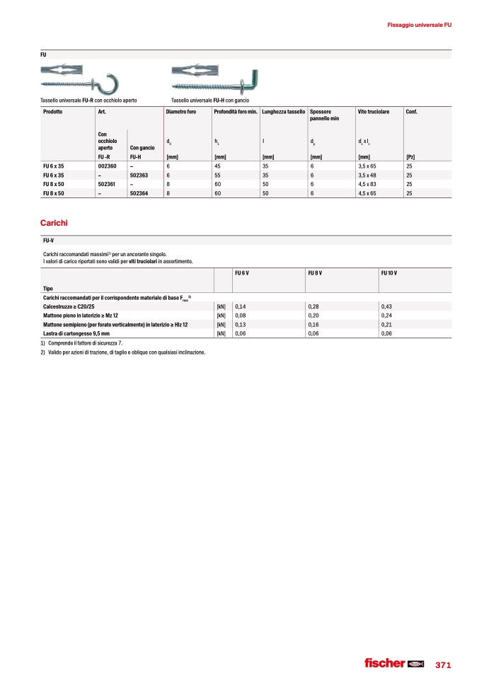 Tassello universale FU-H con gancio