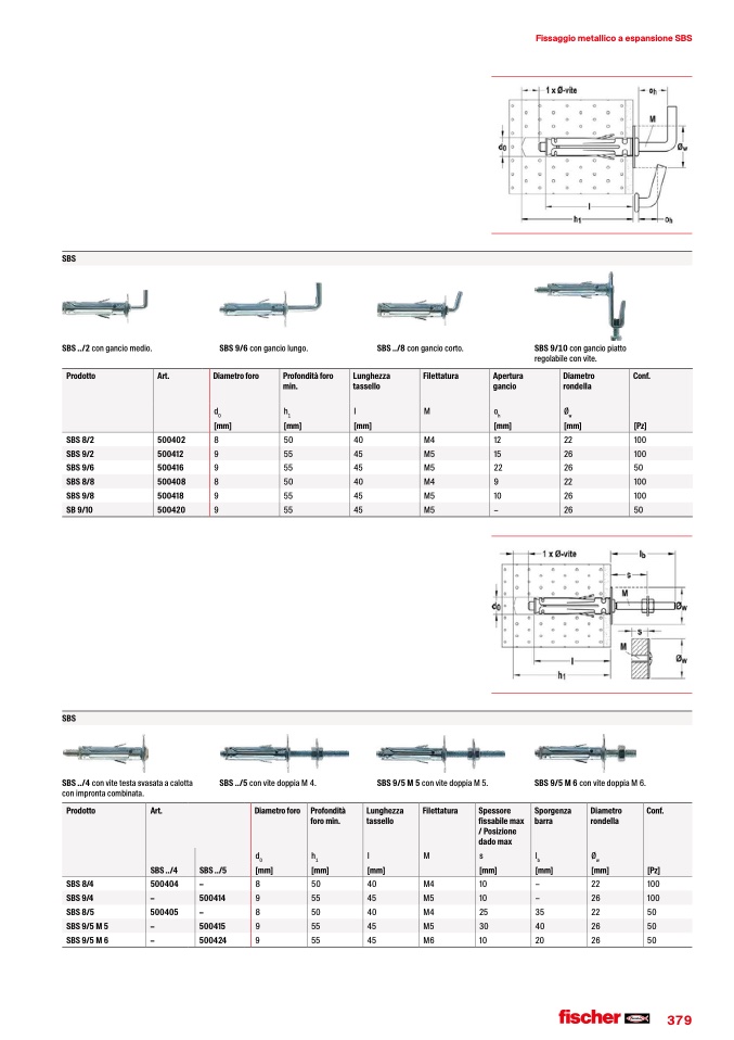 Fissaggio metallico a espansione SBS