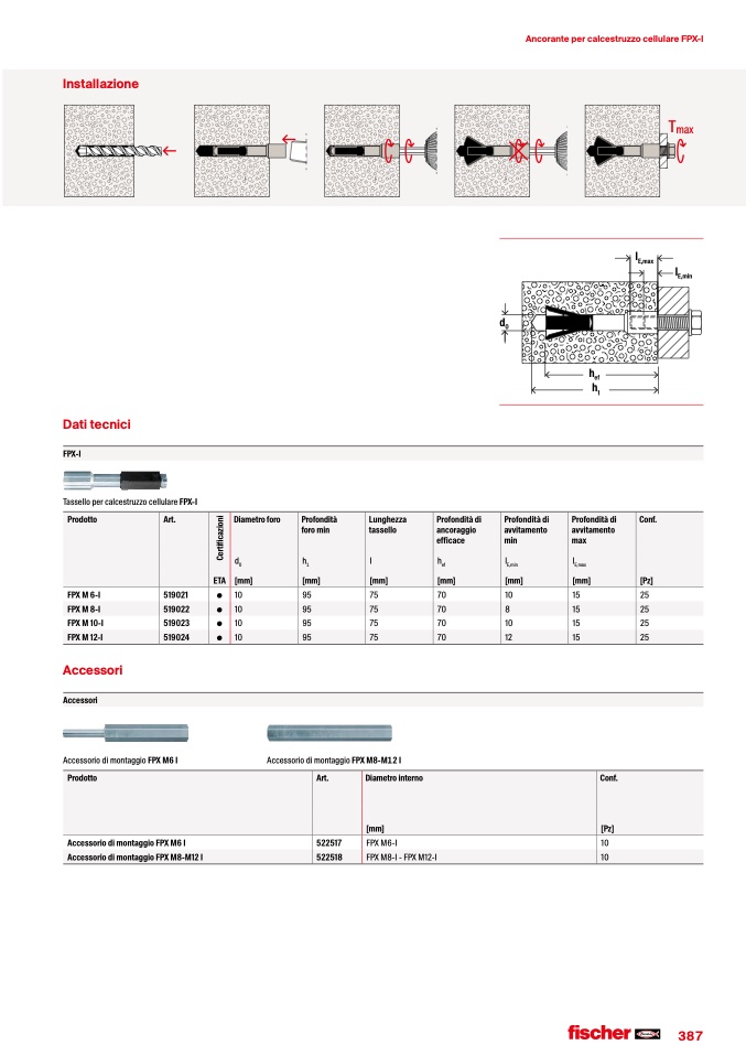 Tassello per calcestruzzo cellulare FPX-I