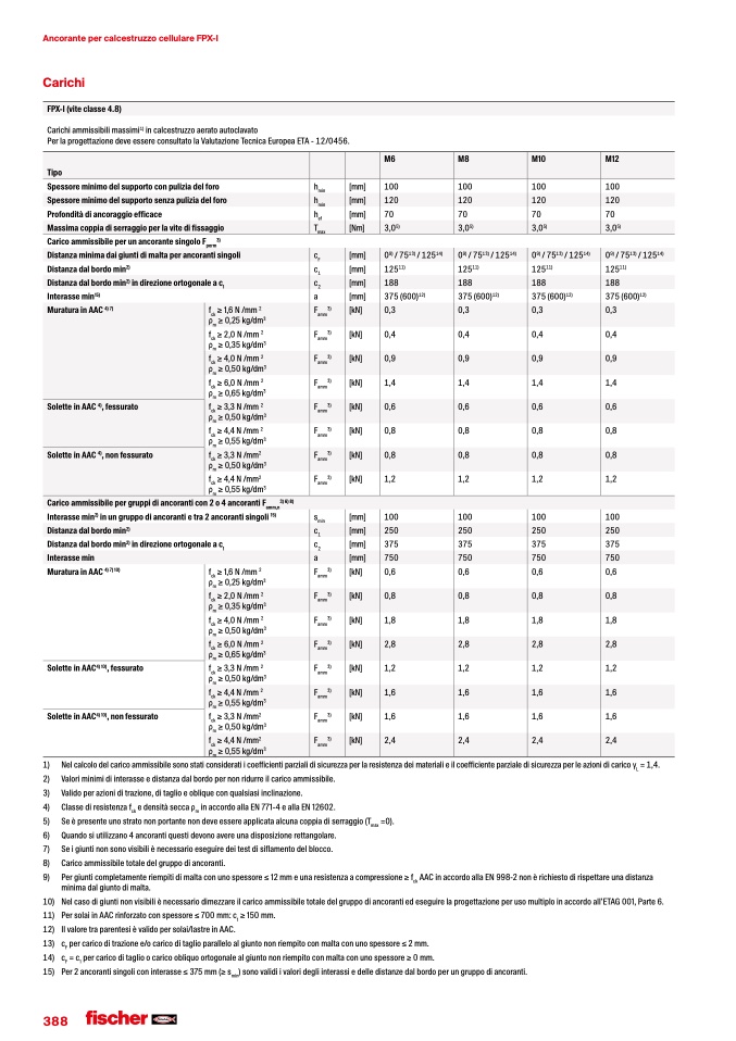10) Nel caso di giunti non visibili è necessario dimezzare il carico ammissibile totale del gruppo di ancoranti ed eseguire la progettazione per uso multiplo in accordo all’ETAG 001, Parte 6.