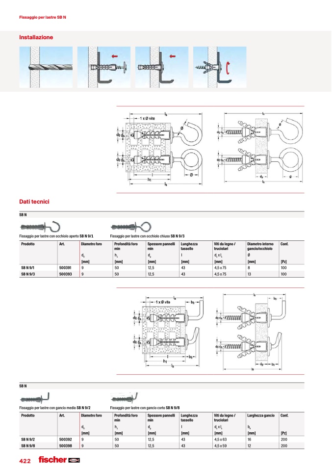 Fissaggio per lastre con occhiolo aperto SB N 9/1