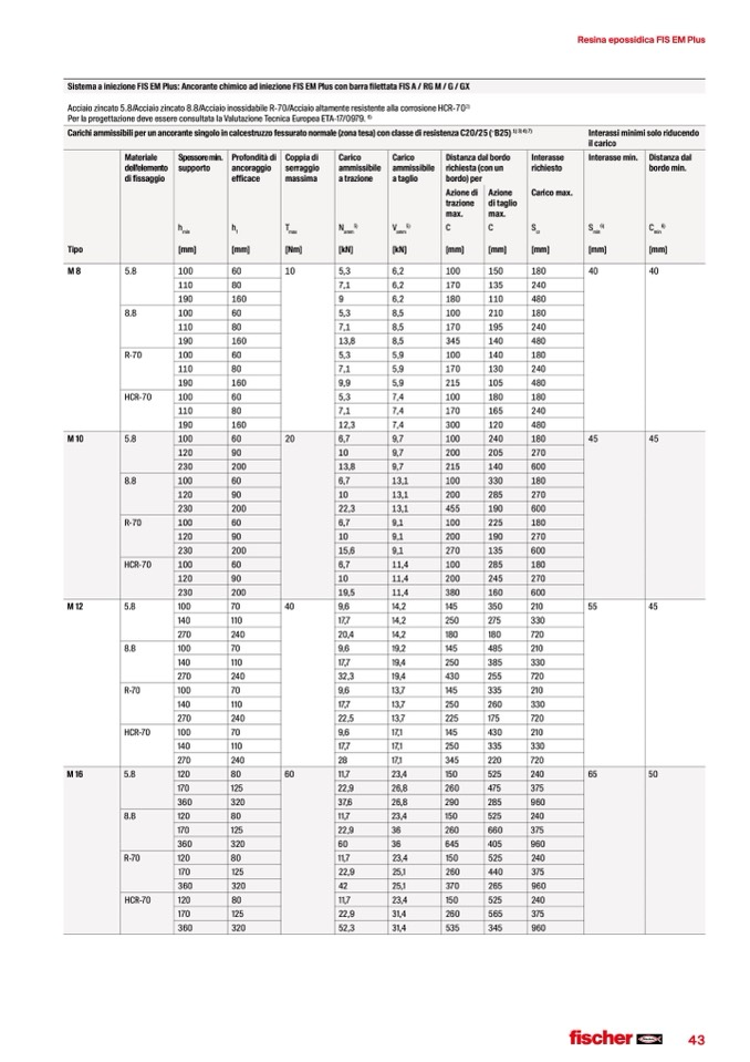 Sistema a iniezione FIS EM Plus: Ancorante chimico ad iniezione FIS EM Plus con barra filettata FIS A / RG M / G / GX