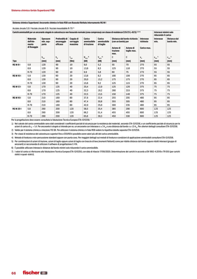 7) IvaloridicaricosiriferisconoallaValutazioneTecnicaEuropeaETA-12/0258,condatadirilascio17/06/2020.DeterminazionedeicarichiinaccordoaEN1992-4:2018eTR055(percarichi