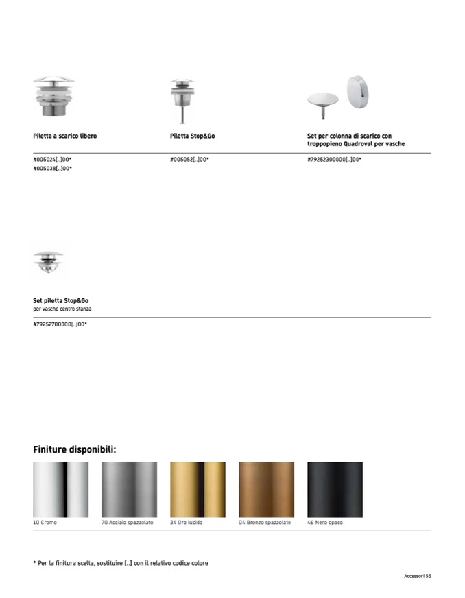 * Per la finitura scelta, sostituire [..] con il relativo codice colore