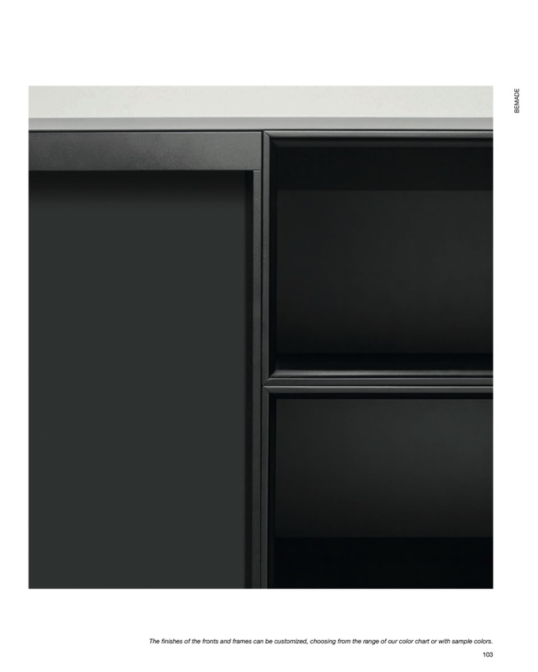 The finishes of the fronts and frames can be customized, choosing from the range of our color chart or with sample colors.