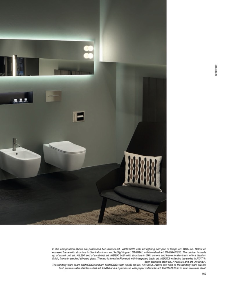 The sanitary-ware is art. KOMODO3 and art. KOMODO4 with AYATI tap art. AY400SA. Above and next to the sanitary-ware are the