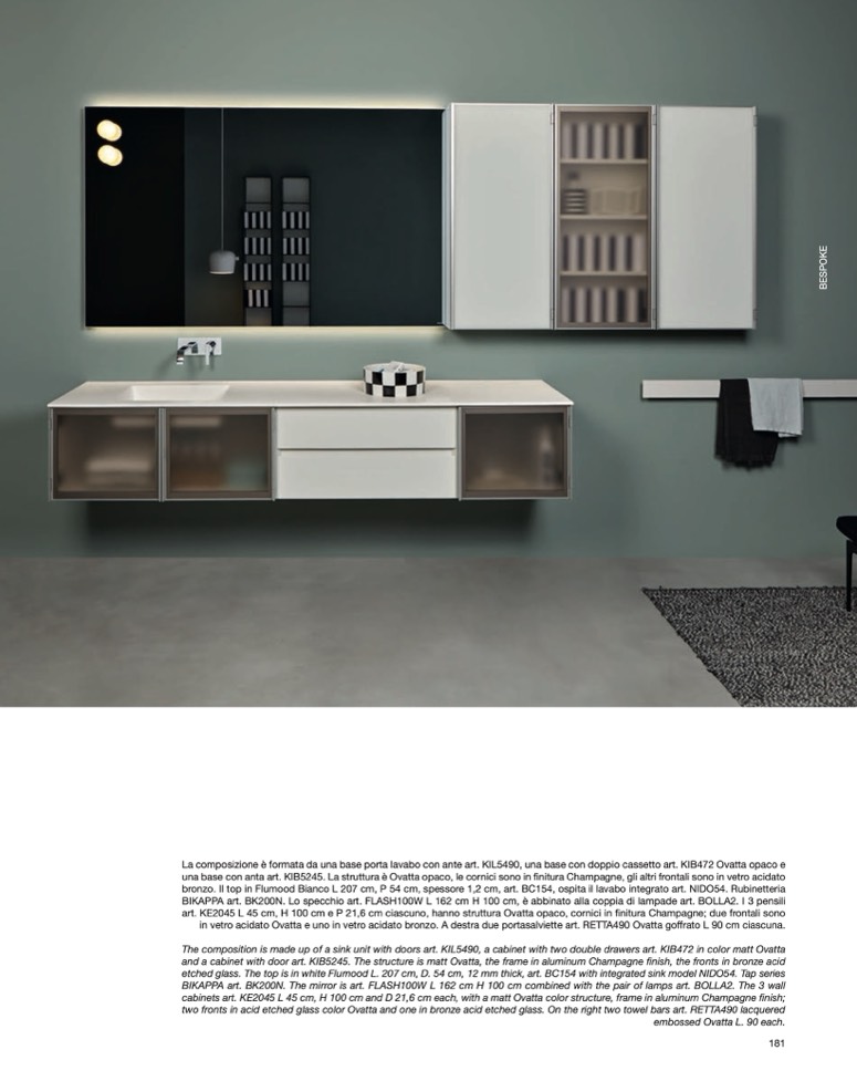 BIKAPPA art. BK200N. The mirror is art. FLASH100W L 162 cm H 100 cm combined with the pair of lamps art. BOLLA2. The 3 wall