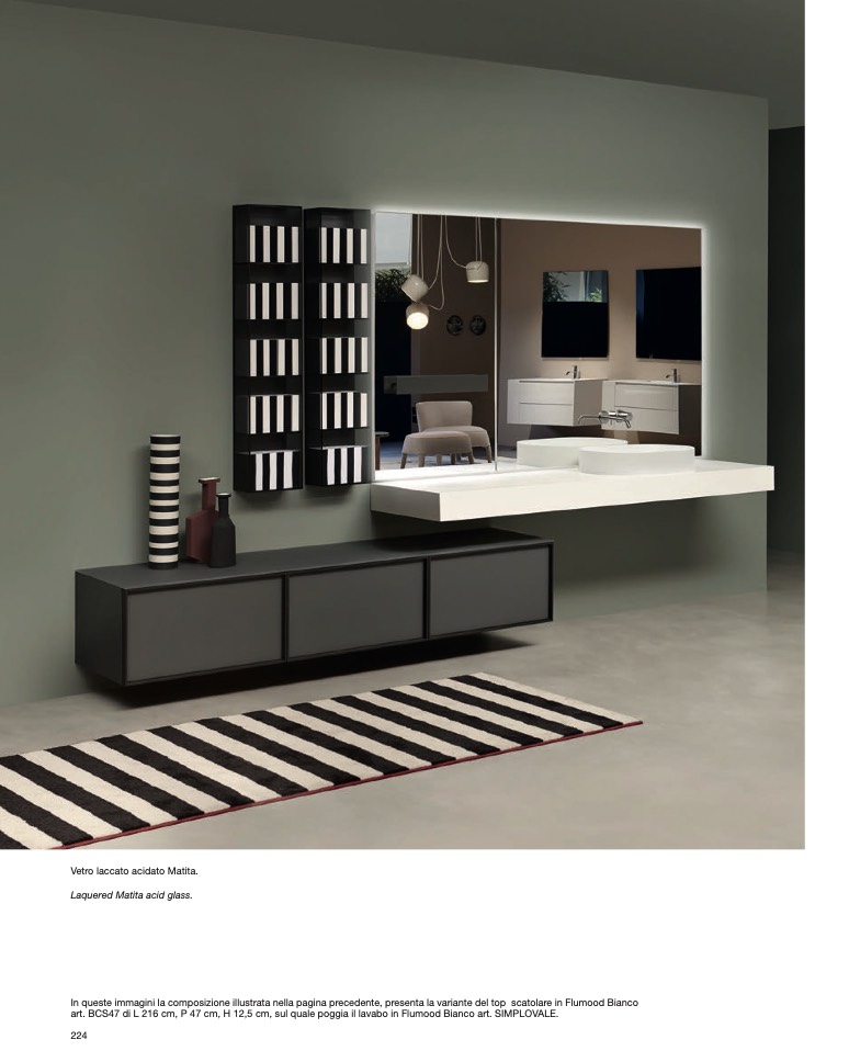 In queste immagini la composizione illustrata nella pagina precedente, presenta la variante del top scatolare in Flumood Bianco