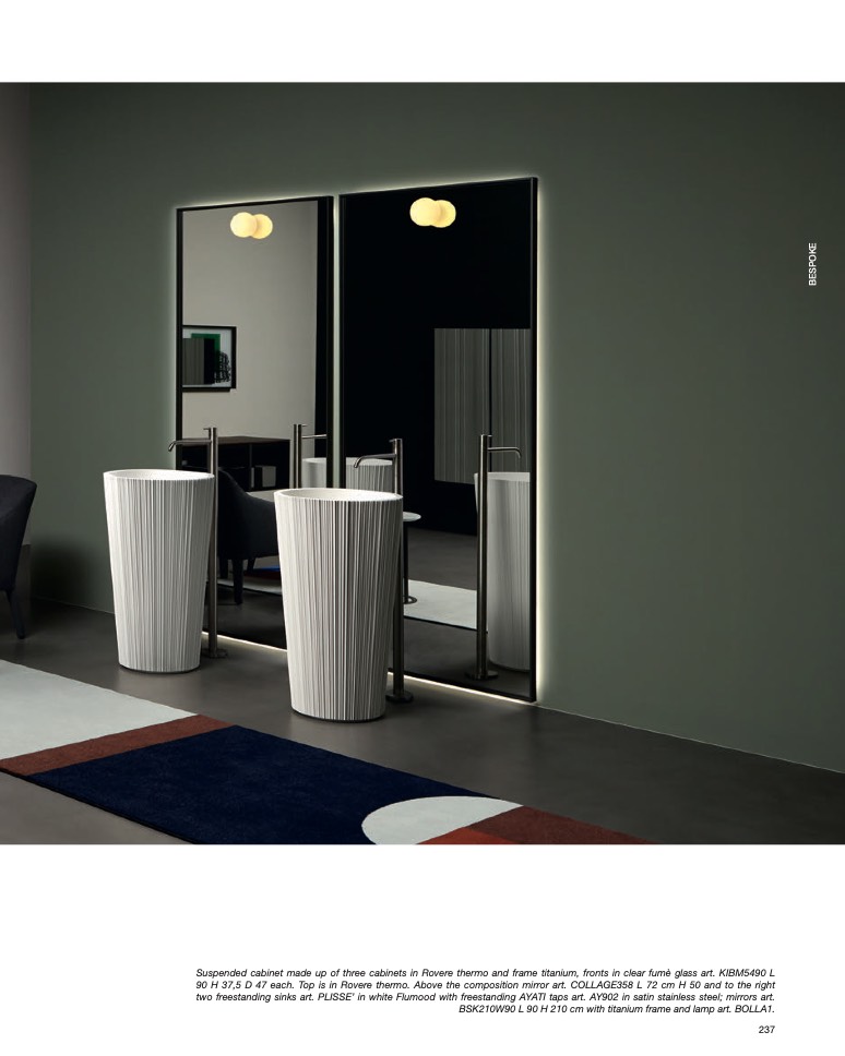 90 H 37,5 D 47 each. Top is in Rovere thermo. Above the composition mirror art. COLLAGE358 L 72 cm H 50 and to the right