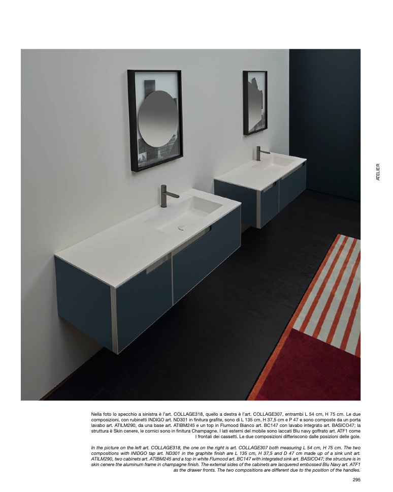 ATILM290, two cabinets art. ATIBM245 and a top in white Flumood art. BC147 with integrated sink art. BASICO47; the structure is in