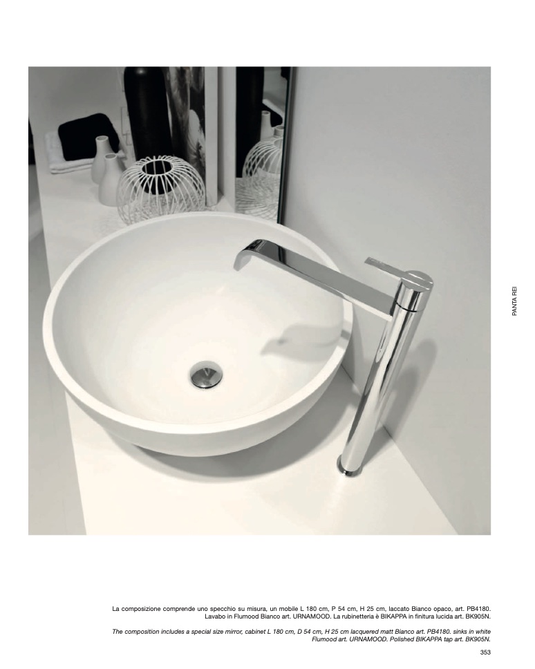 Lavabo in Flumood Bianco art. URNAMOOD. La rubinetteria è BIKAPPA in finitura lucida art. BK905N.